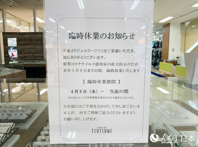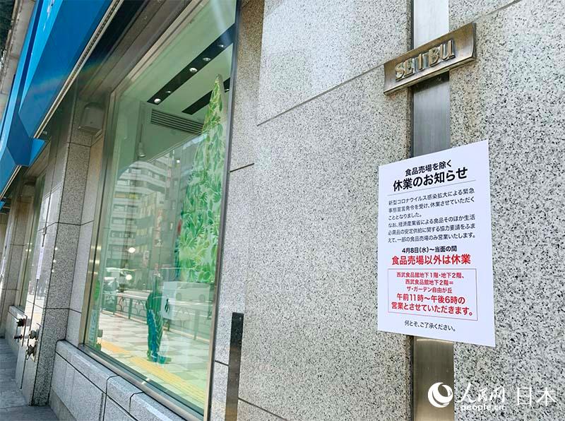記者發現,位于東京都池袋站的東武百貨、西武百貨除食品樓層仍正常營業外其他樓層均已停業,并在多處醒目位置張貼停業通知。位于東京都板橋區的東武練馬永旺商場內,除食品樓層外,各樓層商家也都貼出了將于4月8日至5月6日期間停業的通知。