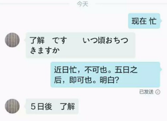 不管怎么說,大多數日本人即便不懂現代漢語,也至少掌握一點古代漢語。圖3是跟不懂中文的日本人用古漢語風對話的截圖。