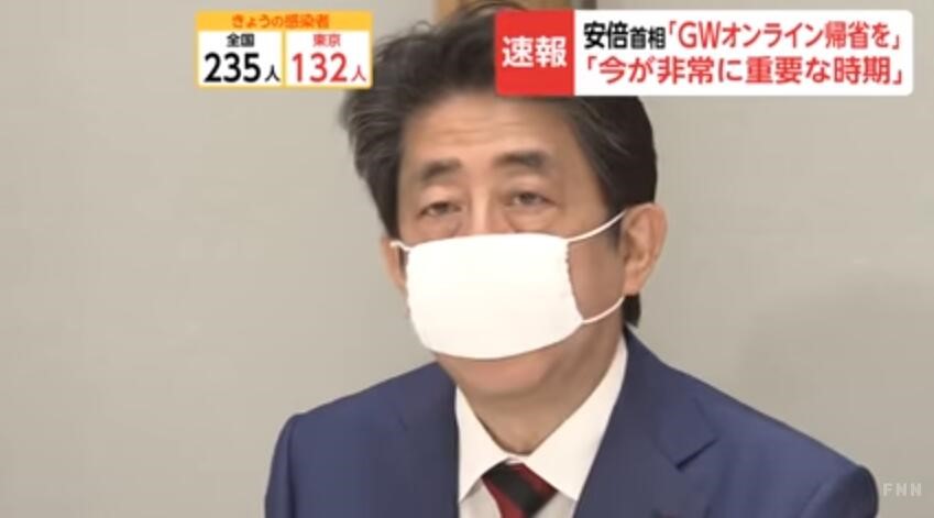 吸取3月份的教訓,在22日的會議上,安倍晉三對國民發出了“10點倡議”,希望在即將到來的五一黃金周連休期間,國民也不要回鄉,鼓勵通過視頻“網絡探親”等方式,改變出行習慣,助力政府提出的將人接觸人的機會“減少8成”的目標。