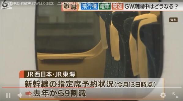 根據日本“ABC電視臺”的報道,日本各交通機構公布了黃金周期間的預約狀況,飛機國內線、新干線的預約都減少了9成。