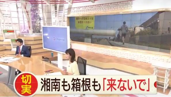 上圖:神奈川縣湘南與箱根呼吁“不要來”的報道截圖
