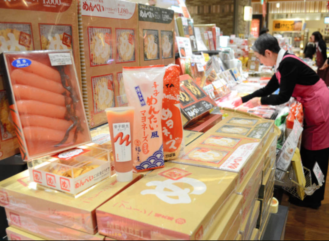 JR博多車站內的明太子口味特產(圖片來源:朝日新聞網站)