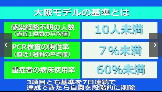 同時,大阪府也出臺了重新收緊防控的標準,一旦出現反彈,需要商家歇業、市民繼續克制減少外出等。具體有: (1)一周內的感染路徑不明者的平均人數比上一周有所增加或持平(2)感染路徑不明人數在5人以上(3)陽性率在7%以上。