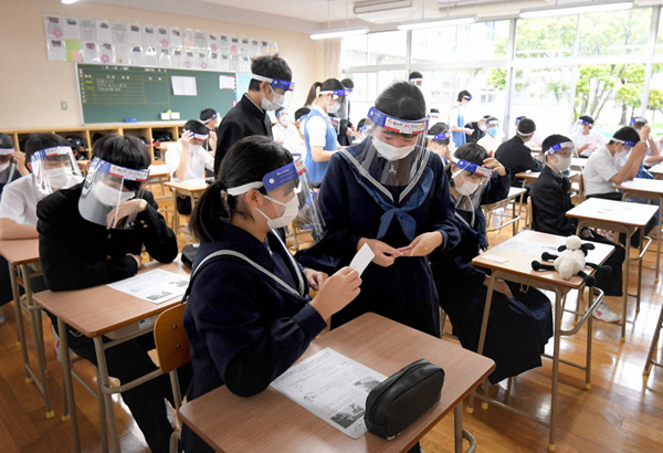 人民網東京5月26日電(記者 陳建軍)伴隨著日本各地相繼解除了“緊急事態宣言”,各地的中小學也紛紛開始復課,學生們重新走進了課堂學習。為了防止疫情復燃,老師和學生們除了佩戴口罩,還想出很多辦法防止相互傳染。