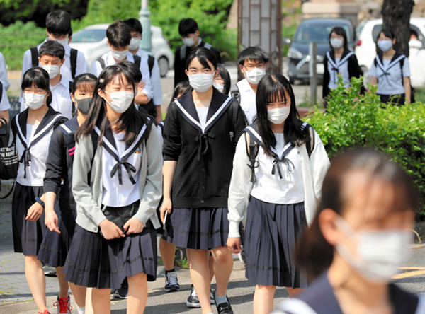 愛知縣立學校相繼復課 學生們戴著口罩分批到校上課
