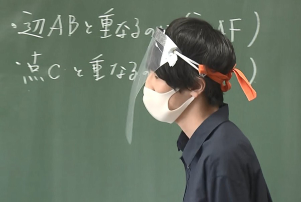 在學生們被分成2批交替到校的桑名市星見丘小學,老師們每天不僅戴著口罩,還佩戴者防護面罩給孩子們上課。