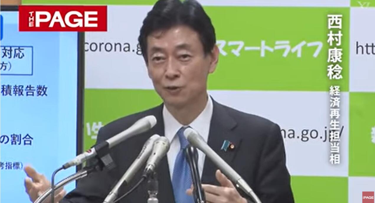上圖:日本經濟再生大臣西村康稔在記者會上強調“解封”后繼續在家辦公的重要性(出處:電視報道截圖)