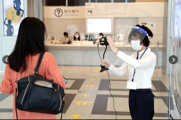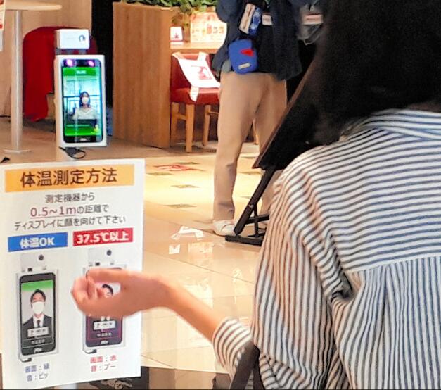 上圖:某重新開放的商業設施對來客測量體溫(出處:《朝日新聞》網站)