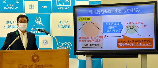 札幌市長秋元克廣在記者會上談今后防疫措施。(圖片來源:日本《朝日新聞》網站)