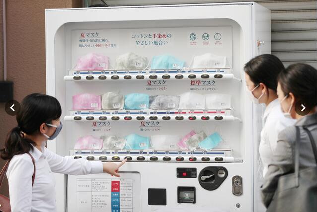 人民網東京6月10日電 據日本《朝日新聞》網站報道,岡山縣倉敷市的“兒道JEANS?STREET”商業街的一角,出現了一款出售不易發生蒸汽、帶著也很涼快的夏季用冰涼型口罩的自動販賣機,深受市民歡迎。