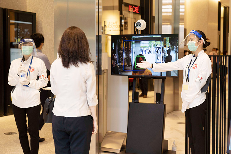 “虎之門Hills Business Tower”通過入口處設置的體溫監測系統為每位客人檢查體溫。(圖片來源:森大廈株式會社)