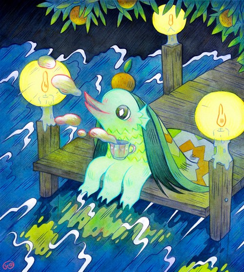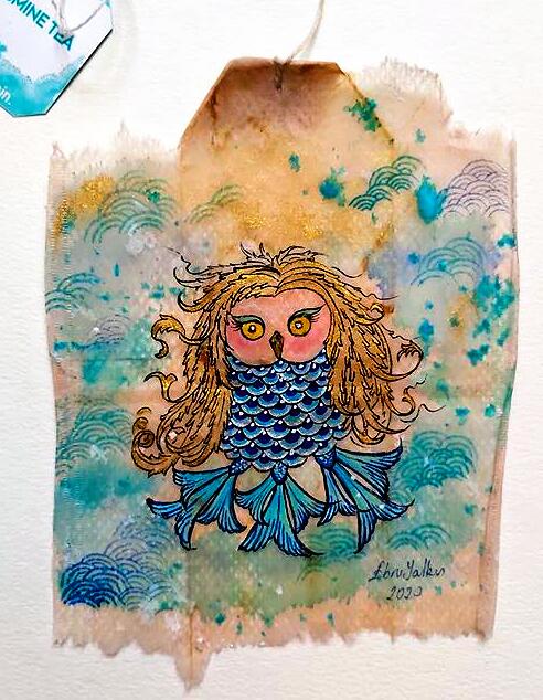 土耳其藝術家在茶包上畫的Amabie(圖片來源:朝日新聞網站,エブル·ヤルキン提供)