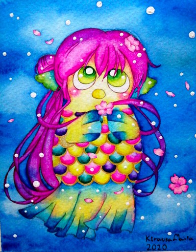 意大利的Ilaria Ricci(@irart_ilariaricci)在SNS上發布的Amabie畫像(圖片來源:朝日新聞網站)