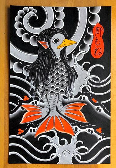 長發,鳥喙一樣的長嘴,長滿鱗片的身體,還長著三只腳……畫風清奇的Amabie為何如此受日本人的喜愛?
