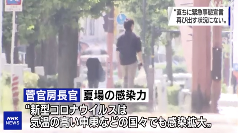 此外,針對病毒在夏季的傳染風險,菅義偉認為,在氣溫較高的中東地區國家也出現了新冠疫情的擴散。目前,新冠病毒在夏季的傳染風險是否會降低尚無定論。