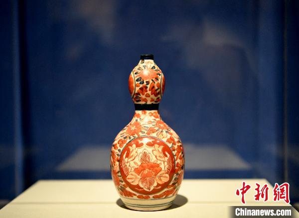 展出的青花礬紅彩花卉紋葫蘆瓶。 安源 攝