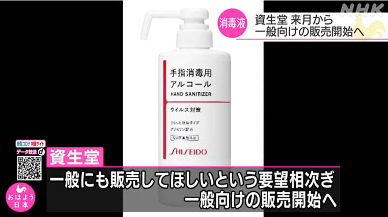 一般消費者向資生堂提出希望公開銷售消毒液的訴求。(NHK視頻截圖)