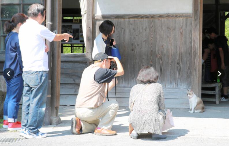游人在給網紅貓拍照(出處:《朝日新聞》網站)