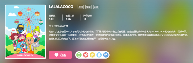 據了解,《LALALACOCO》動畫片講述了一個熱愛時尚,充滿夢想的可愛主人公COCO。她在阿拉美圖小鎮上與伙伴們,圍繞著一家名為“LALALACOCO”的時尚小雜貨鋪,展開了多姿多彩的時尚故事。