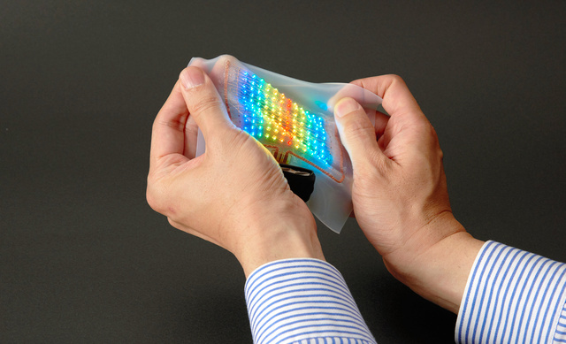大日本印刷公司聯合東京大學開發的可伸縮屏幕。(圖片由大日本印刷公司提供)