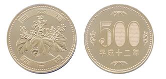 500日元硬幣正面是桐樹,背面是竹子和橘。這幾種在日本都被視為非常神圣的樹木,也常作為材料使用,是極具代表性的植物。