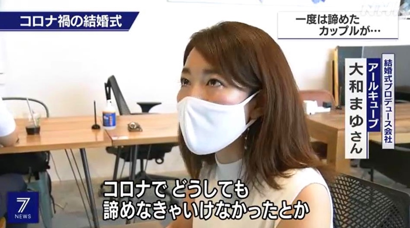 東京都內某婚慶策劃公司從7月開始,為因疫情、經濟等問題放棄舉辦婚禮的新人推出新的服務方案。(NHK電視臺視頻截圖)