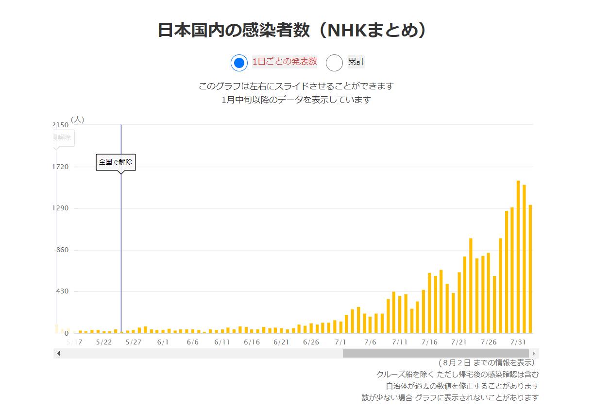 7月31日,日本全國的單日新增確診病例突然猛增到1580例。