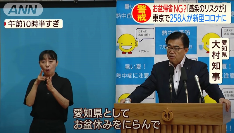 愛知縣連日以來的新增確診病例均超過100例以上,愛知縣知事大村秀章對此強調稱:“如果現在的疫情仍不受控制,愛知縣政府將不得不呼吁民眾不要外出,采取居家防疫措施!鼻锾锟h知事佐竹敬久也向即將返鄉的民眾和當地民眾呼吁要控制外出,居家防疫。福島縣知事內堀雅雄表示,如果家里有老人或者生病的人,這種情況下為防止傳染,盡量控制假期中返鄉。如果返鄉,也要避免多人共用同一餐具就餐,在家庭內開啟“新生活方式”。