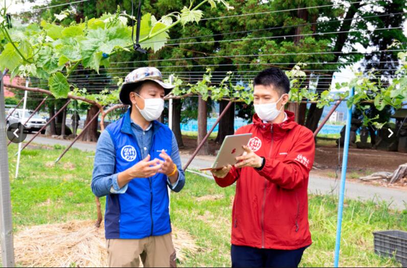 上圖:長野一農戶向有意移居的網友直播葡萄園情況(來源:《朝日新聞》網站)