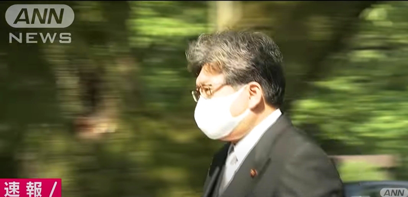 日本文部科學大臣荻生田光一前往靖國神社參拜。(圖片來源:朝日電視臺視頻截圖)