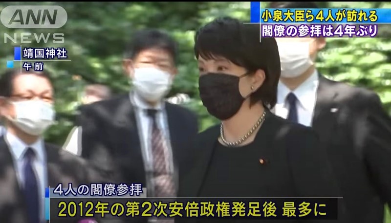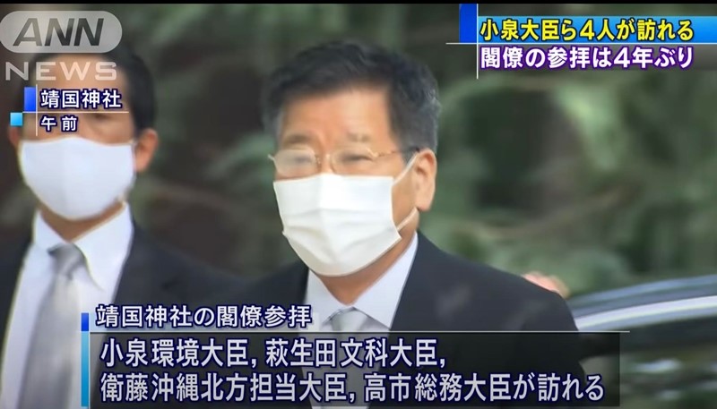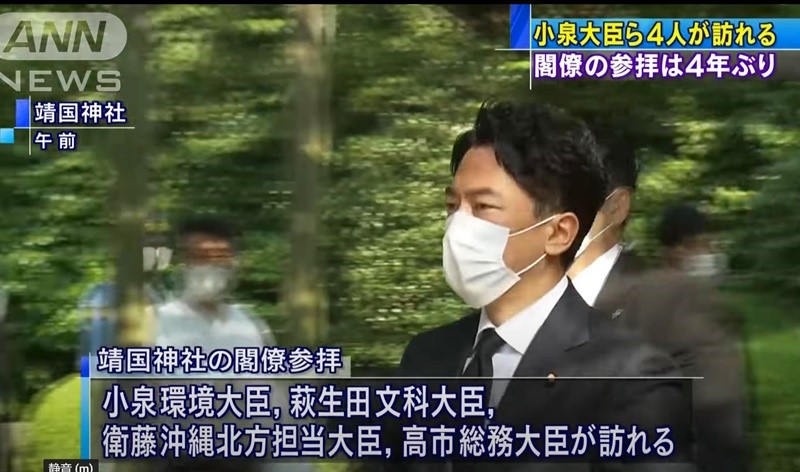 據悉,這是自2016年8月15日總務大臣高市早苗和奧運大臣丸川珠代參拜靖國神社后,時隔四年再次有日本內閣成員于日本戰敗紀念日當天參拜靖國神社。