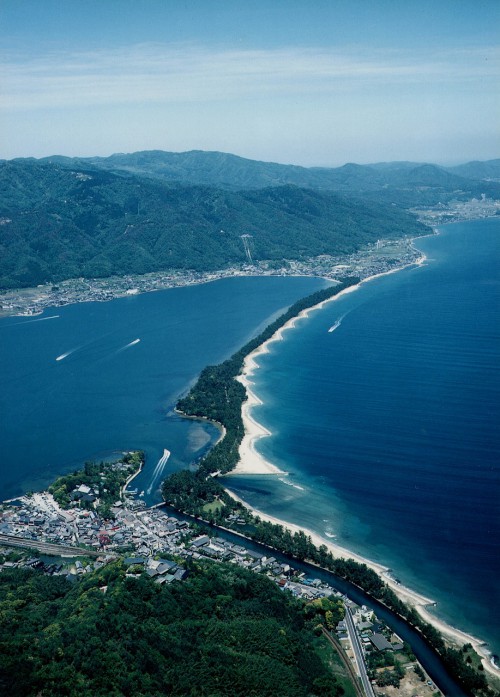 天橋立現在位于京都府宮津市文珠天橋立公園,在以自衛隊基地著稱的舞鶴附近。這里也是京都當地人經常光顧的海濱浴場,更是近畿一帶的著名景點。