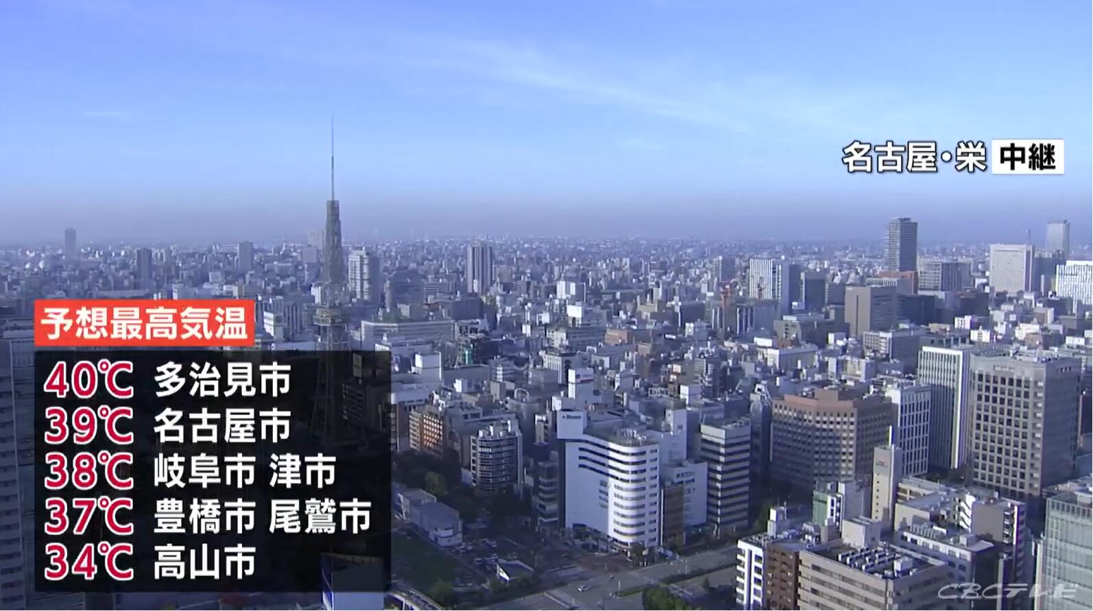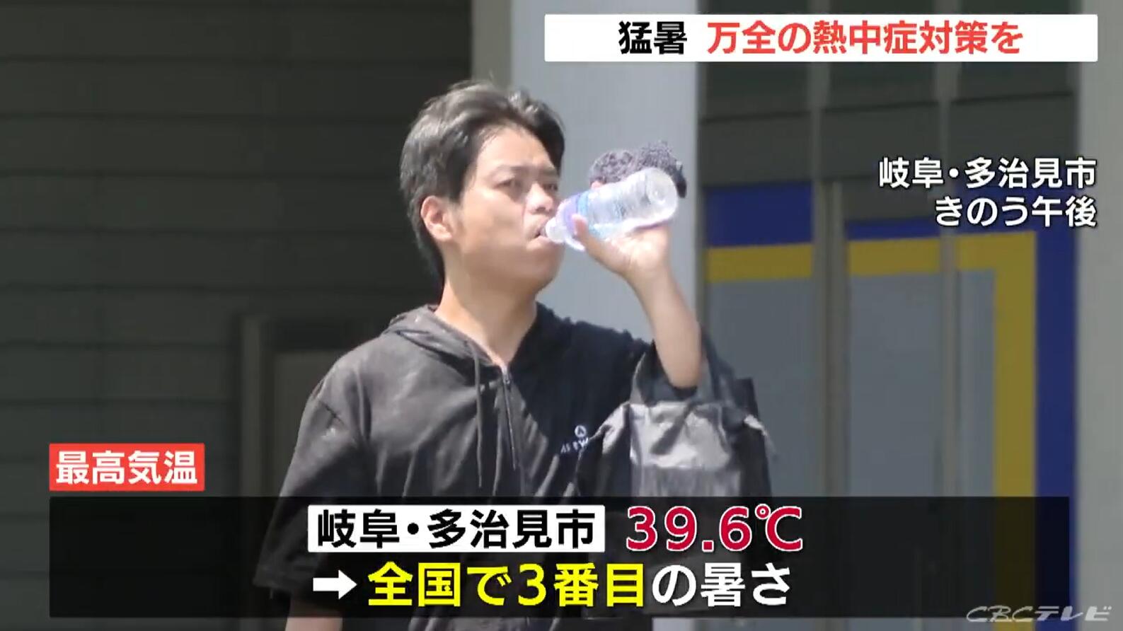 據日本氣象廳發布的消息,16日日本的最高氣溫出現在靜岡縣濱松市,高達40.9℃。除此之外,其他地方也陸續觀測到今年的最高氣溫。地處中部地區的岐阜縣多治見市觀測到的最高氣溫達39.6℃,高知縣四萬十市西土佐達到39.4℃,山梨縣甲府市為39.2℃,各地氣溫都到達了“危險”境地的暑熱。