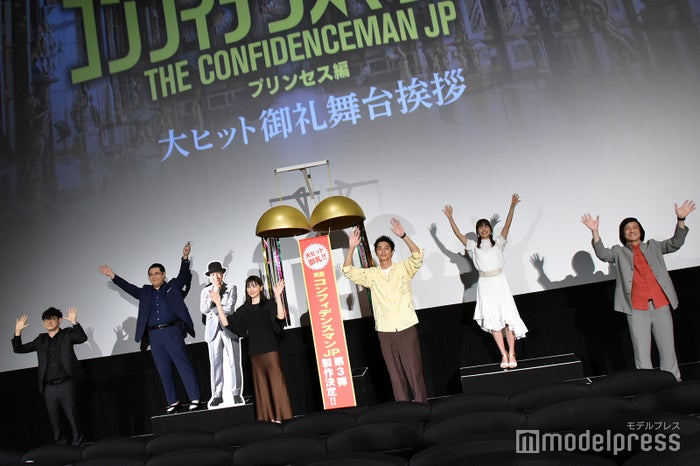人民網東京8月20日電 日本頻道綜合日本時尚娛樂網站Modelpress報道,正在日本火爆上映中的電影《行騙天下JP:公主篇》劇組日前在東京舉行了一個人氣超高的舞臺見面會。演員長澤雅美、東出昌大、小手伸也、關水渚以及成龍的模仿藝人和導演田中亮都出席了見面會。小日向文世雖然由于拍攝任務沒能出席現場,但是也通過遠程連線與觀眾們打了招呼。