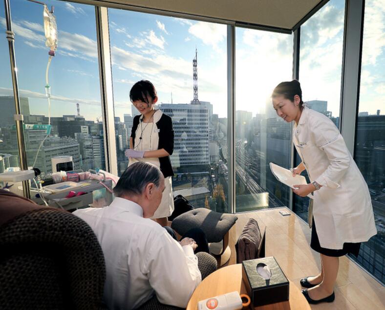 上圖:一市民在東京高級體檢機構打點滴 (出處:《朝日新聞》網站)