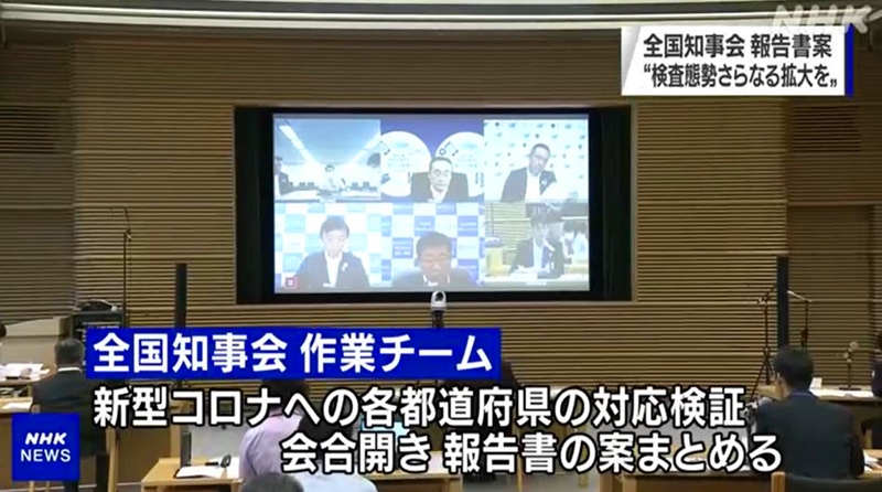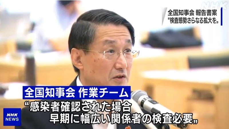 全國知事會工作小組(WT)提出,有必要在確認感染者后盡早對其接觸人員進行大范圍檢查。(NHK電視臺視頻截圖)