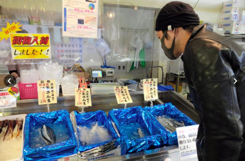 上圖:一家店頭出售的高價秋刀魚(出處:《朝日新聞》網站)