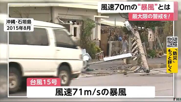 日本氣象廳強調稱,如果達到最大瞬間風速60米以上,行駛中的卡車有可能出現側翻或者住宅倒塌的危險。