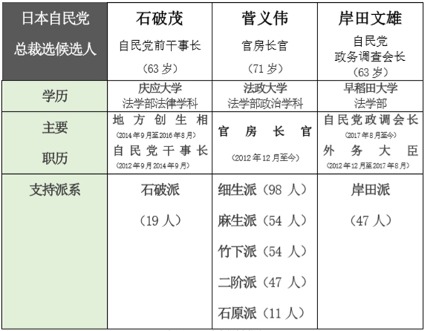 據悉,自民黨的黨內7個派系中有5個派系表示支持菅義偉,同時他還得到了部分無派系議員的支持,這讓他在國會議員票上處于優勢。而岸田文雄、石破茂兩人則試圖在地方黨員代表中獲得盡可能多的支持。