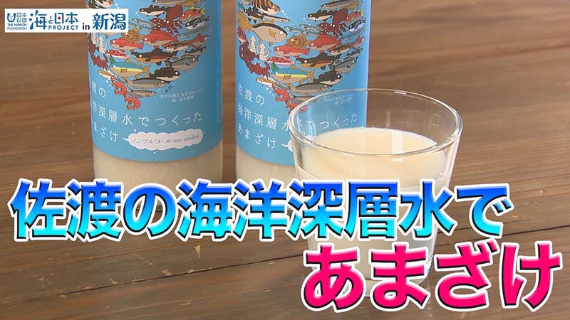 上圖:使用佐渡海洋深層水釀造出甘酒的電視報道截圖