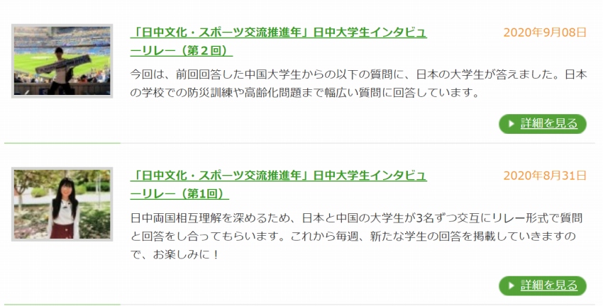 此次活動時間為2020年8月中旬至10月下旬。中日大學生的網上接力還在進行中,問答內容將即時發布于中日友協官網、日中友好會館官網等兩國網絡平臺。兩國年輕人還會碰撞出怎樣的火花,展現出哪些獨到的見解,值得期待。