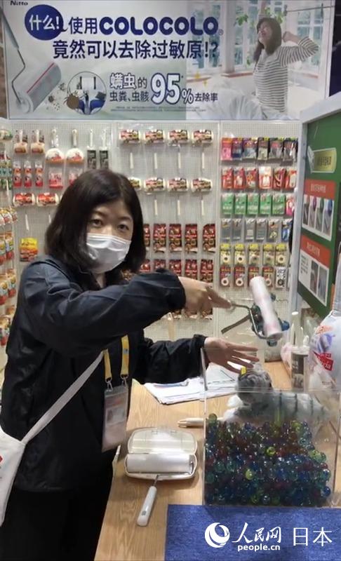 日本企業帶來的新技術不僅限于硬核的醫療、工業方面,也有生活方面的小創新。日東材料在現場演示了一款新改良的粘毛器,通過對比可以看到,該粘毛器甚至可以粘起多個玻璃球,而以往的粘毛器一個玻璃球都粘不起來。這款粘毛器不但可以除塵還能夠除螨,據介紹,這一新功能備受來場人士關注。