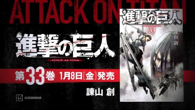 據悉,《進擊的巨人》漫畫單行本第33卷將于1月8日發售,最終卷的第34卷將于6月9日發售。(編譯:陳建軍)