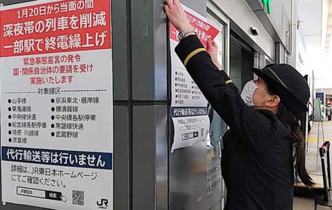 JR東日本屆時會將山手線、京濱東北·根岸線等11條線路的末班車提前8-32分鐘。各大私營鐵路公司則會分別將末班車時間提前14-30分鐘。