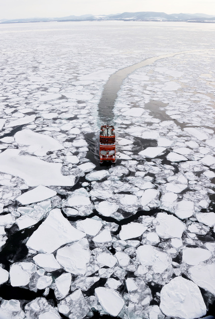 日本北海道紋別市迎來流冰季(圖片來源:朝日新聞網站)