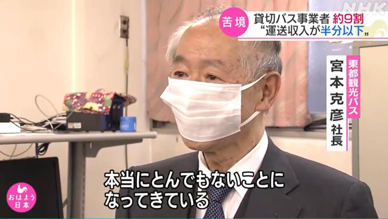 日本巴士協會整車租賃委員會副會長、東都觀光巴士社長宮本克彥。(NHK電視臺視頻截圖)