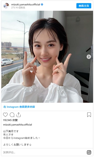 山下在自己的首條動態中寫道:“大家好,我是山下美月。從今天開始我將正式入駐instagram。請大家多多關照! 同時,她還上傳了兩張露出額頭的自拍照。