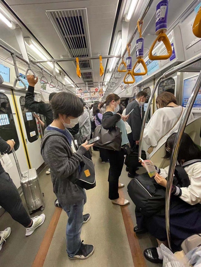 5月6日,日本東京都的一列通勤電車內。(吳穎 攝)