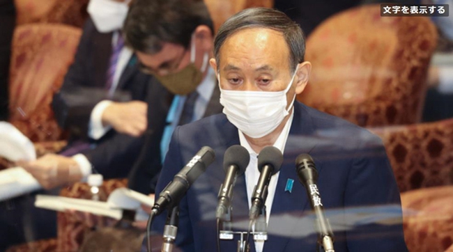 日本首相菅義偉回答立憲民主黨代表枝野幸男的提問。(圖片來源:《朝日新聞》網站)