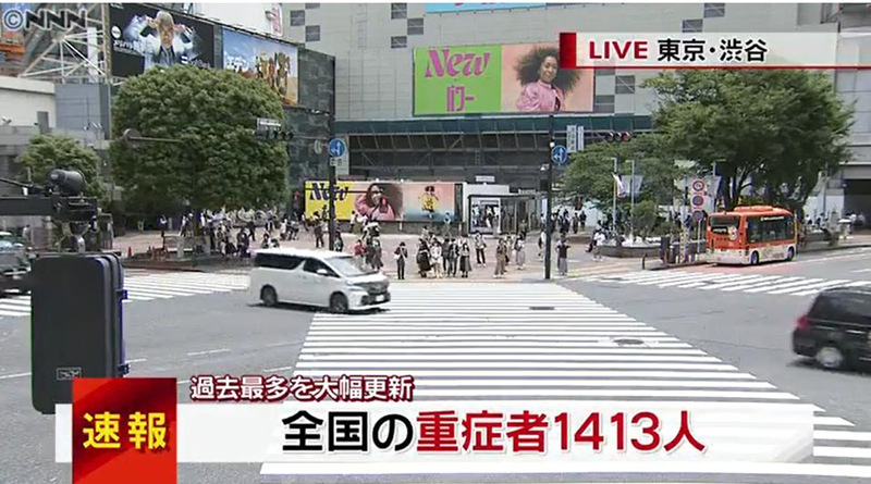 日本國內現有重癥病例1413例,再次刷新歷史最高紀錄。(日本電視臺視頻截圖)